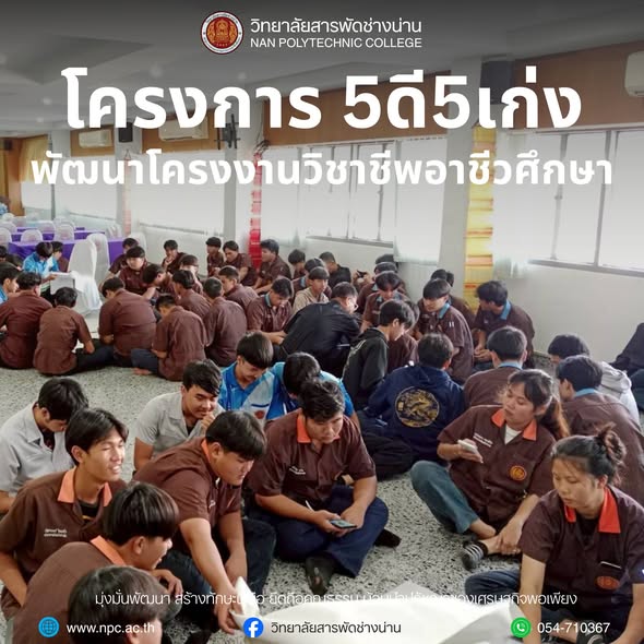 วันพฤหัสบดี ที่ 30 ตุลาคม 2568 ครูชมรมวิชาชีพทุกชมรม พร้อมด้วยนักเรียน นักศึกษาทุกสาขาวิชา ร่วมกันเขียนโครงการ 5ดี 5เก่ง เพื่อเรียนรู้ถึงหลักการและการพัฒนาศักยภาพในการสร้างโครงการและกิจกรรมทางวิชาชีพในอนาคต