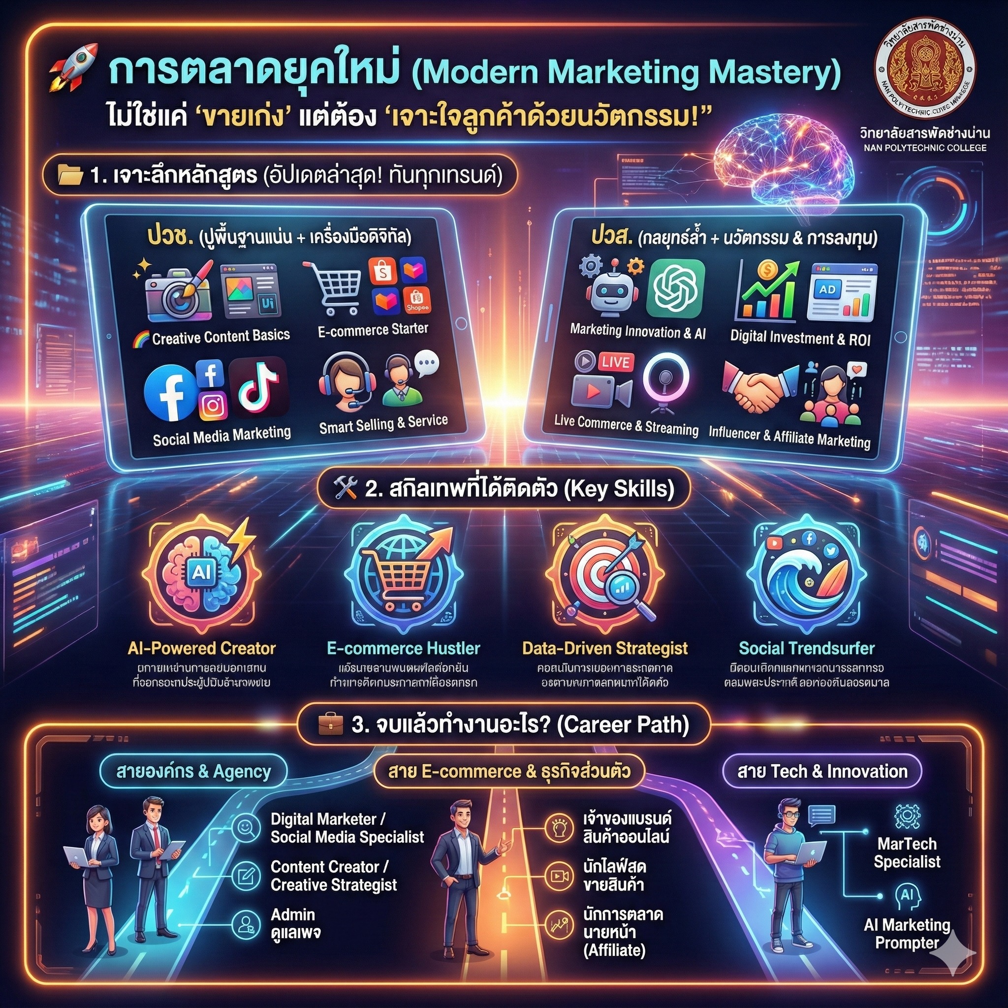นักยิงแอดมือทอง ที่จับอะไรก็เป็นเงิน ต้องมาเรียน "สาขาการตลาด" ที่วิทยาลัยสารพัดช่างน่าน! เราจัดเต็มหลักสูตร E-commerce และ Social Marketing ที่ใช้งานได้จริง!