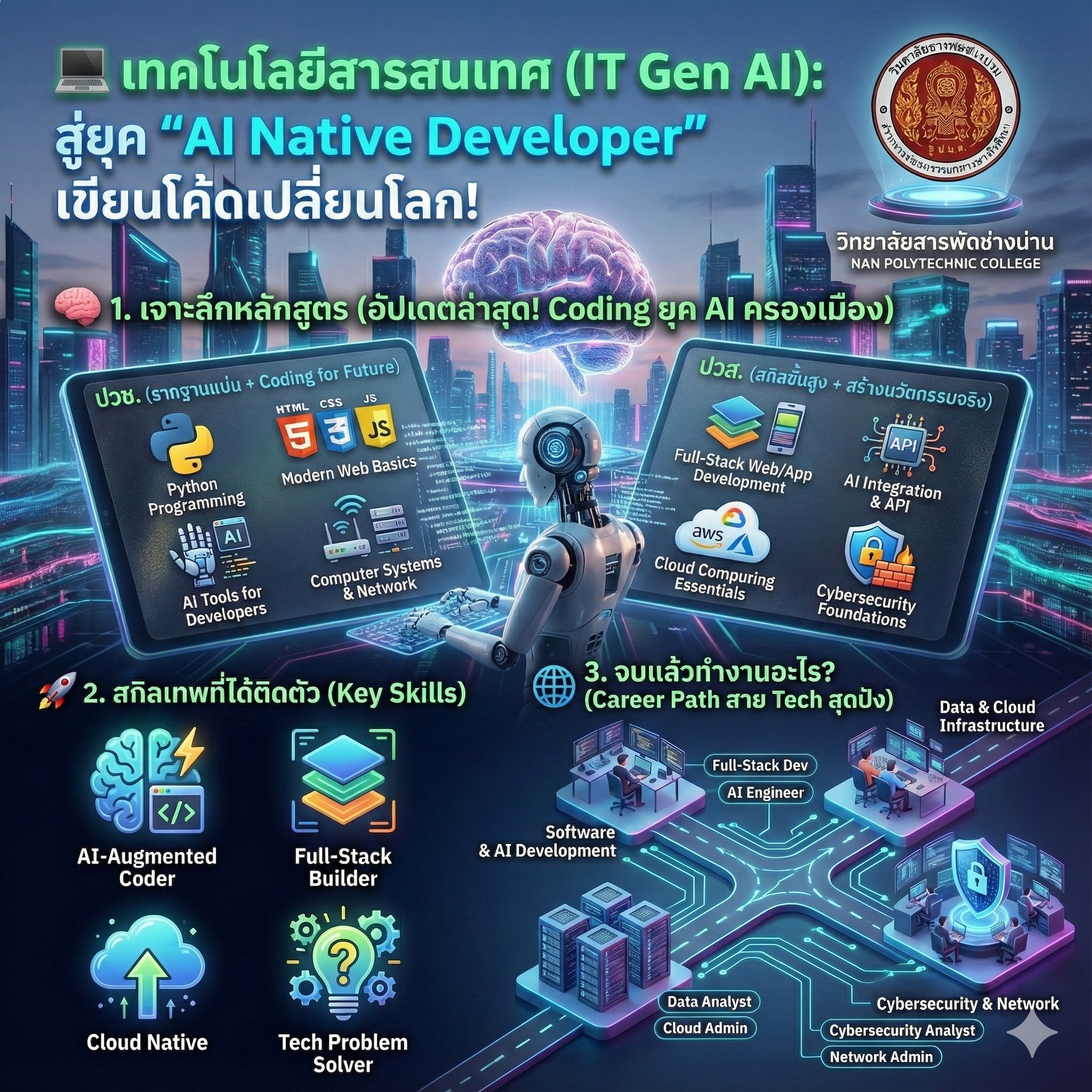 มาอัปสกิลสู่โลกอนาคตที่ วิทยาลัยสารพัดช่างน่าน สาขาเทคโนโลยีสารสนเทศ (IT) เราสอนสิ่งทีี่โลกทำงานจริงต้องการ: