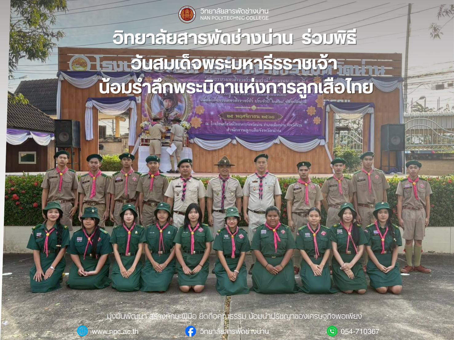 วิทยาลัยสารพัดช่างน่าน ร่วมพิธี "วันสมเด็จพระมหาธีรราชเจ้า" ประจำปี 2568 น้อมรำลึกพระบิดาแห่งการลูกเสือไทย ณ โรงเรียนศรีสวัสดิ์วิทยาคาร