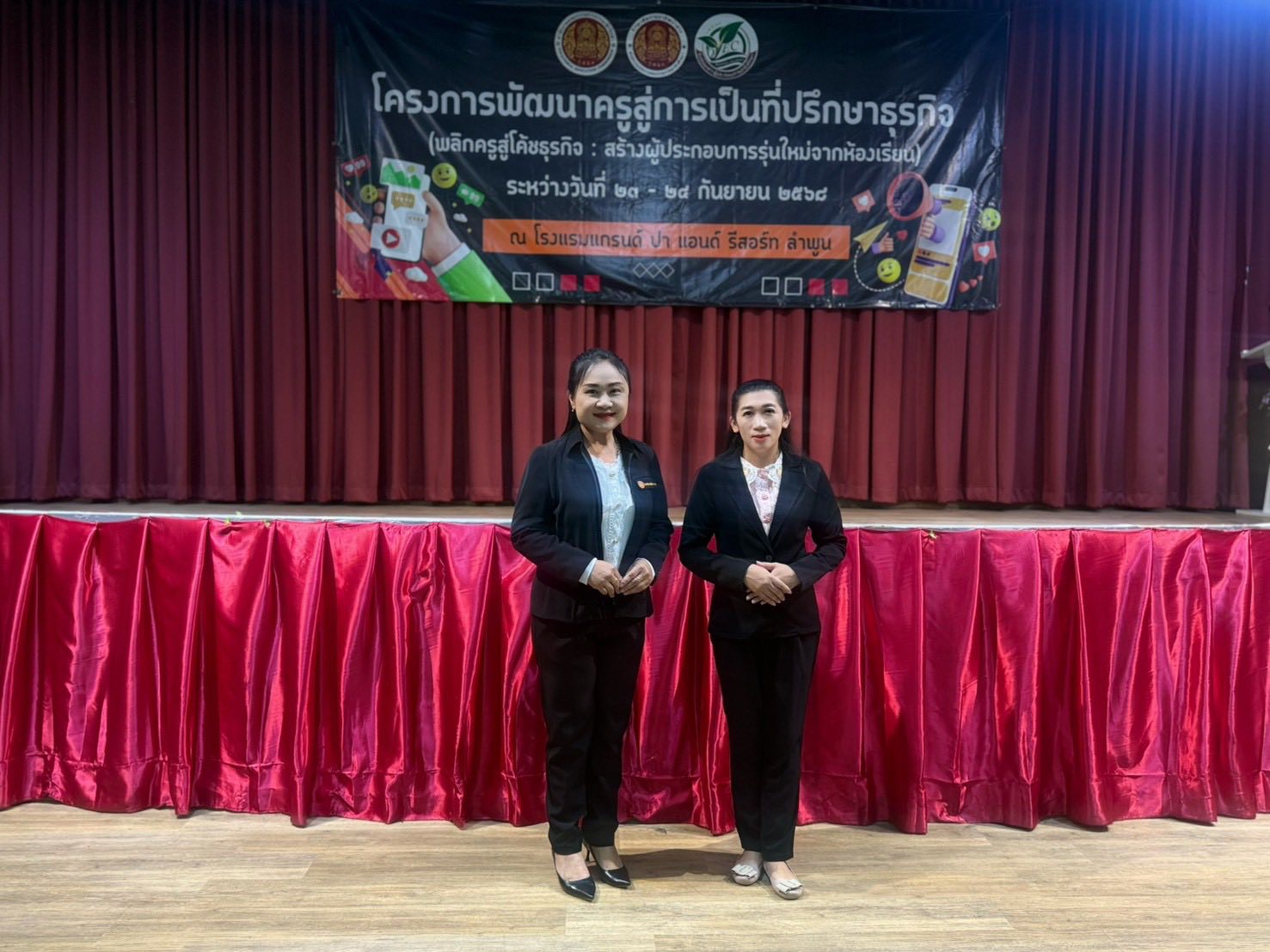 วันอังคารที่ 23 กันยายน 2568 นางอติกานต์ วิมลเกษม และ นางสาวชัญญานุช ชมภูมิ่ง ได้เข้าร่วมโครงการอบรมเชิงปฎิบัติการพัฒนาครูสู่การเป็นที่ปรึกษาธุรกิจ (พลิกครูสู่โค้ชธุรกิจ: สร้างผู้ประกอบการรุ่นใหม่จากห้องเรียน) ระหว่างวันที่ 23-24 กันยายน 2568 ณ โรงแรมแกรนด์ ปา แอนด์ รีสอร์ท ลำพูน