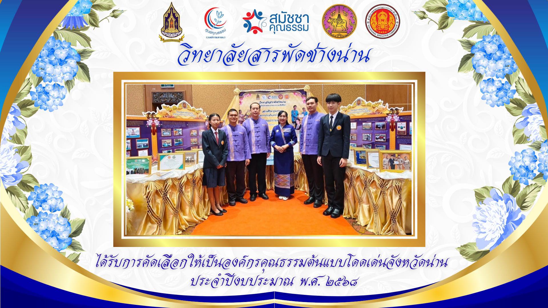 ขอแสดงความยินดี #วิทยาลัยสารพัดช่างน่าน ได้รับการคัดเลือกให้เป็นองค์กรคุณธรรมต้นแบบโดดเด่นจังหวัดน่าน ประจำปีงบประมาณ พ.ศ. 2568
