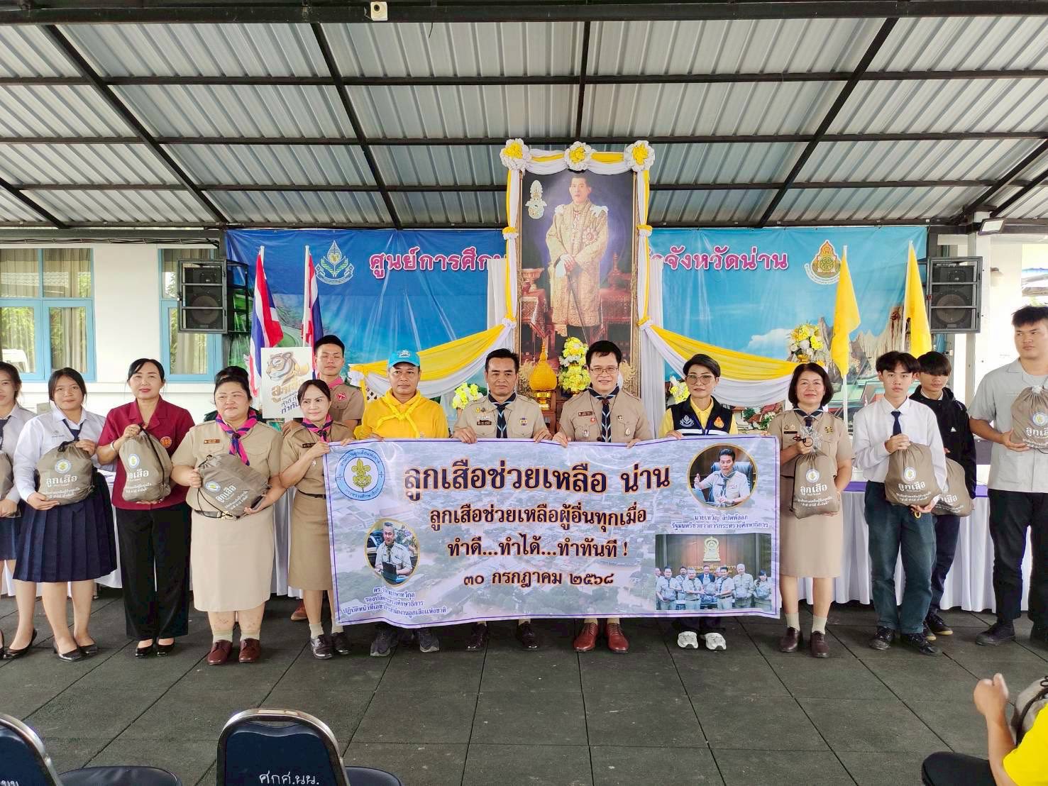 วันพุธ ที่ 30 กรกฎาคม 2568 นางวริทธิ์นันท์ จันทรมนตรี ผู้อำนวยการวิทยาลัยสารพัดช่างน่าน พร้อมด้วยนักเรียนนักศึกษาที่ประสบภัยน้ำท่วม จำนวน 20 คน เข้ารับถุงยังชีพจากนายสุภชัย จันปุ่ม รองเลขาธิการสำนักงานลูกเสือแห่งชาติ จากสำนักงานลูกเสือแห่งชาติ กระทรวงศึกษาธิการ ณ ศูนย์การศึกษาพิเศษประจำจังหวัดน่าน