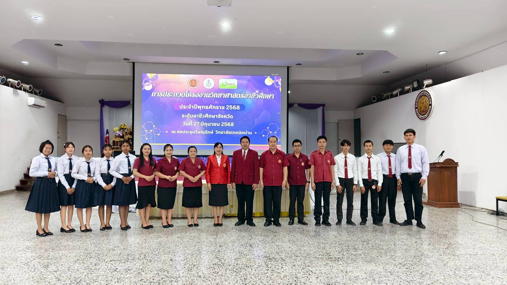 วันศุกร์ ที่ 27 มิถุนายน 2568 นางวริทธิ์นันท์ จันทรมนตรี ผู้อำนวยการวิทยาลัยสารพัดช่างน่าน พร้อมด้วย นายนิพนธ์ ร่องพืช รองผู้อำนวยการฝ่ายวิชาการ และคณะครู เข้าร่วมกิจกรรมการประกวดโครงงานวิทยาศาสตร์อาชีวศึกษา ระดับอาชีวศึกษาจังหวัด ประจำปีพุทธศักราช 2568