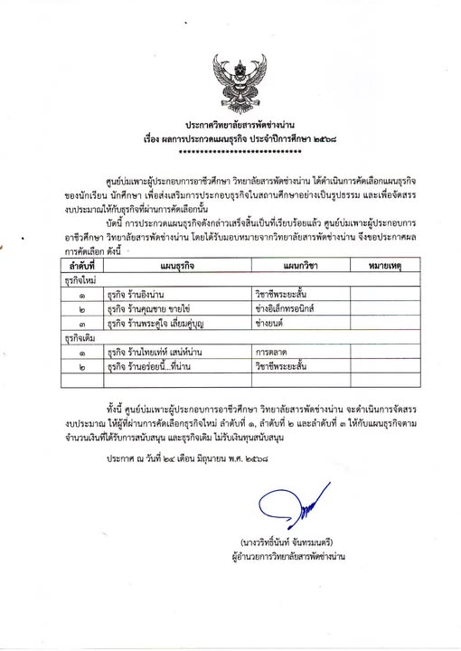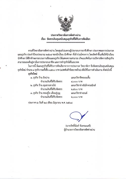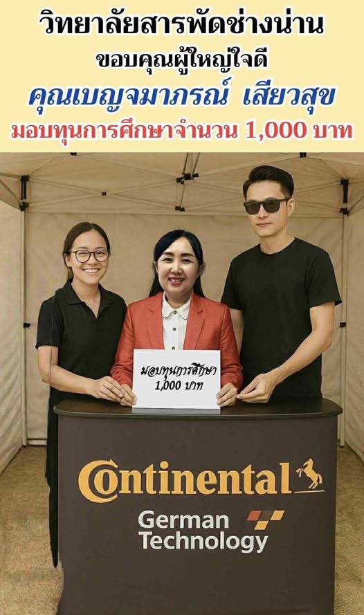 วิทยาลัยสารพัดช่างน่าน ขอขอบคุณผู้ใหญ่ใจดี คุณเบญจมาภรณ์ เสียวสุข มอบทุนการศึกษา จำนวน 1,000 บาท ให้แก่นักเรียนนักศึกษา วิทยาลัยสารพัดช่างน่าน