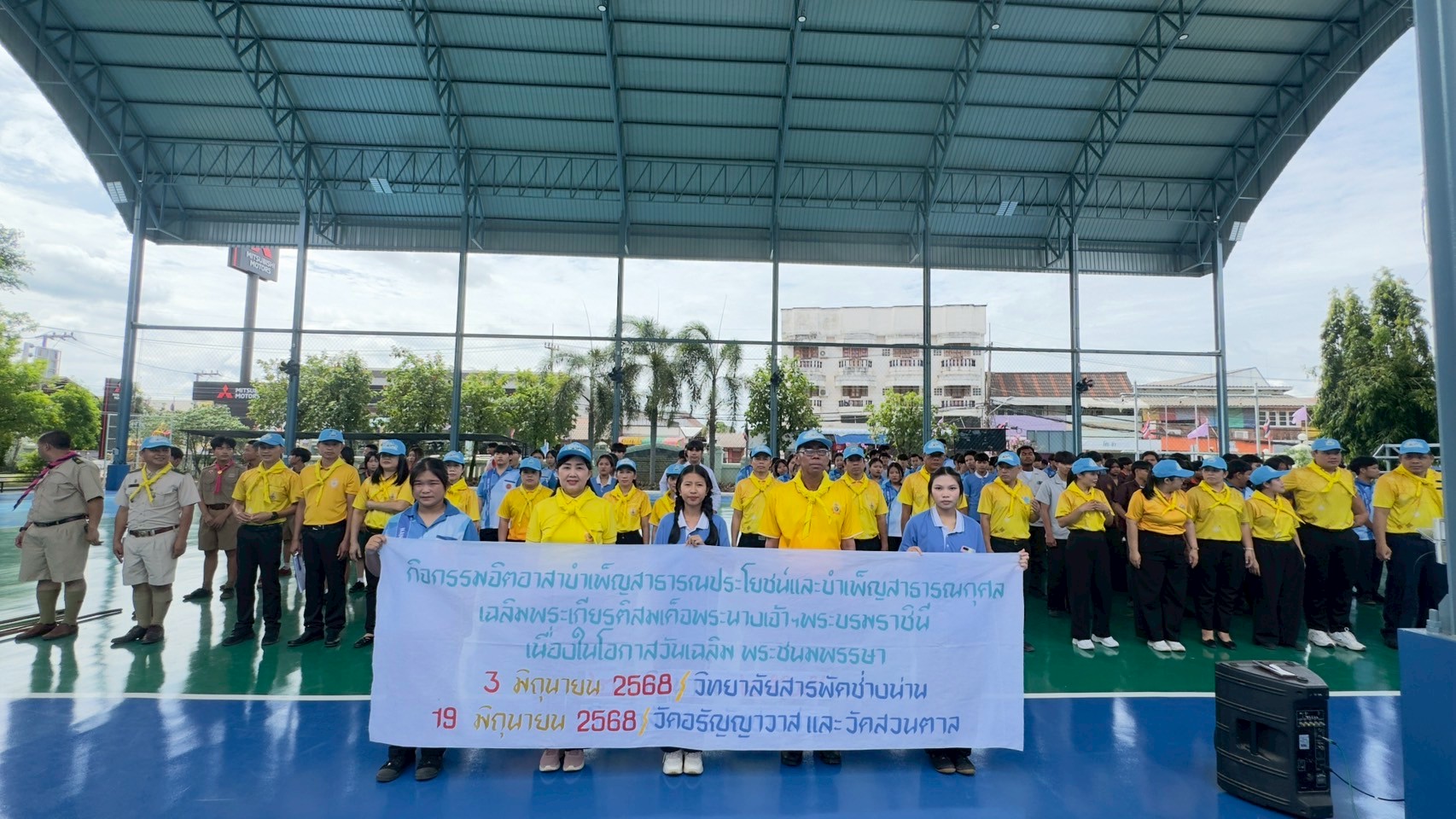 วันพฤหัสบดีที่ 19 มิถุนายน 2568 นางวริทธิ์นันท์ จันทรมนตรี ผู้อำนวยการวิทยาลัยสารพัดช่างน่าน พร้อมด้วย ฝ่ายบริหาร คณะครู บุคลากรทางการศึกษา นักเรียนนักศึกษา วิทยาลัยสารพัดช่างน่าน และ นายวิชาญ ศรีสุขคำ ผู้กำกับลูกเสือ ลูกเสือ-เนตรนารีวิสามัญ วิทยาลัยสารพัดช่างน่าน เข้าร่วมกิจกรรมจิตอาสาสาธารณและบำเพ็ญสาธารณ กุศลเฉลิมพระเกียรติสมเด็จพระนางเจ้าฯพระบรมราชินี เนื่องในโอกาสวันเฉลิมพระชนมพรรษา 3 มิถุนายน 2568 ณ วัดอรัญญาวาส และวัดสวนตาล อำเภอเมือง จังหวัดน่าน
