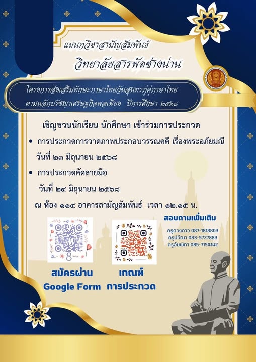 แผนกวิชาสามัญสัมพันธ์ วิทยาลัยสารพัดช่างน่าน เชิญชวนนักเรียน นักศึกษา เข้าร่วมกิจกรรมการประกวดตามโครงการส่งเสริมทักษะภาษาไทย วันสุนทรภู่คู่ภาษาไทยตามหลักปรัชญาเศรษฐกิจพอเพียง ปีการศึกษา 2568