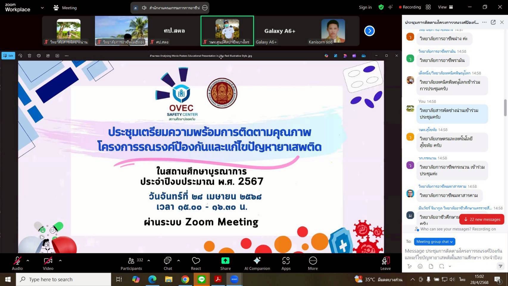 วันจันทร์ ที่ 28 เมษายน 2568 นายอรรณพ ทาการ หัวหน้างานปกครอง นักเรียน นักศึกษา วิทยาลัยสารพัดช่างน่าน ได้เข้าร่วมประชุมเตรียมความพร้อมการติดตามคุณภาพโครงการรณรงค์ป้องกันและแก้ไขปัญหายาเสพติด ในสถานศึกษาบูรณาการ ประจำปีงบประมาณ พ.ศ.2567 ผ่านระบบ Zoom Meeting