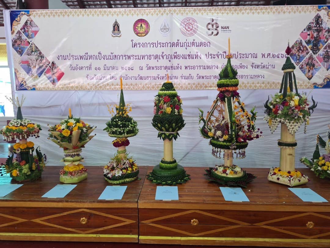 วันอังคารที่ 11 มีนาคม 2568 นางอติกานต์ วิมลเกษม หัวหน้าแผนกวิชาการตลาด นำนักเรียนระดับชั้น ปวช. 1 แผนกวิชาการตลาด ร่วมประกวดต้นกุ่ม ต้นดอก งานประเพณีหกเป็งนมัสการพระมหาธาตุเจ้าภูเพียงแช่แห้ง ประจำปี 2568 ณ ศาลาหลวงวัดพระธาตุแช่แห้งพระอารามหลวง ตำบลม่วงตึ๊ด อำเภอภูเพียงจังหวัดน่าน