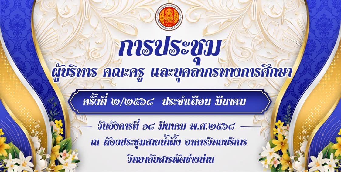 วันอังคาร ที่ 18 มีนาคม 2568 วิทยาลัยสารพัดช่างน่าน ดำเนินการประชุมผู้บริหาร คณะครู และบุคลากรทางการศึกษา ครั้งที่ 2/2568 ประจำเดือนมีนาคม และร่วมอวยพรวันคล้ายวันเกิดในเดือน กุมภาพันธ์ และ มีนาคม ณ ห้องประชุมสายน้ำผึ้ง อาคารวิทยบริการ วิทยาลัยสารพัดช่างน่าน