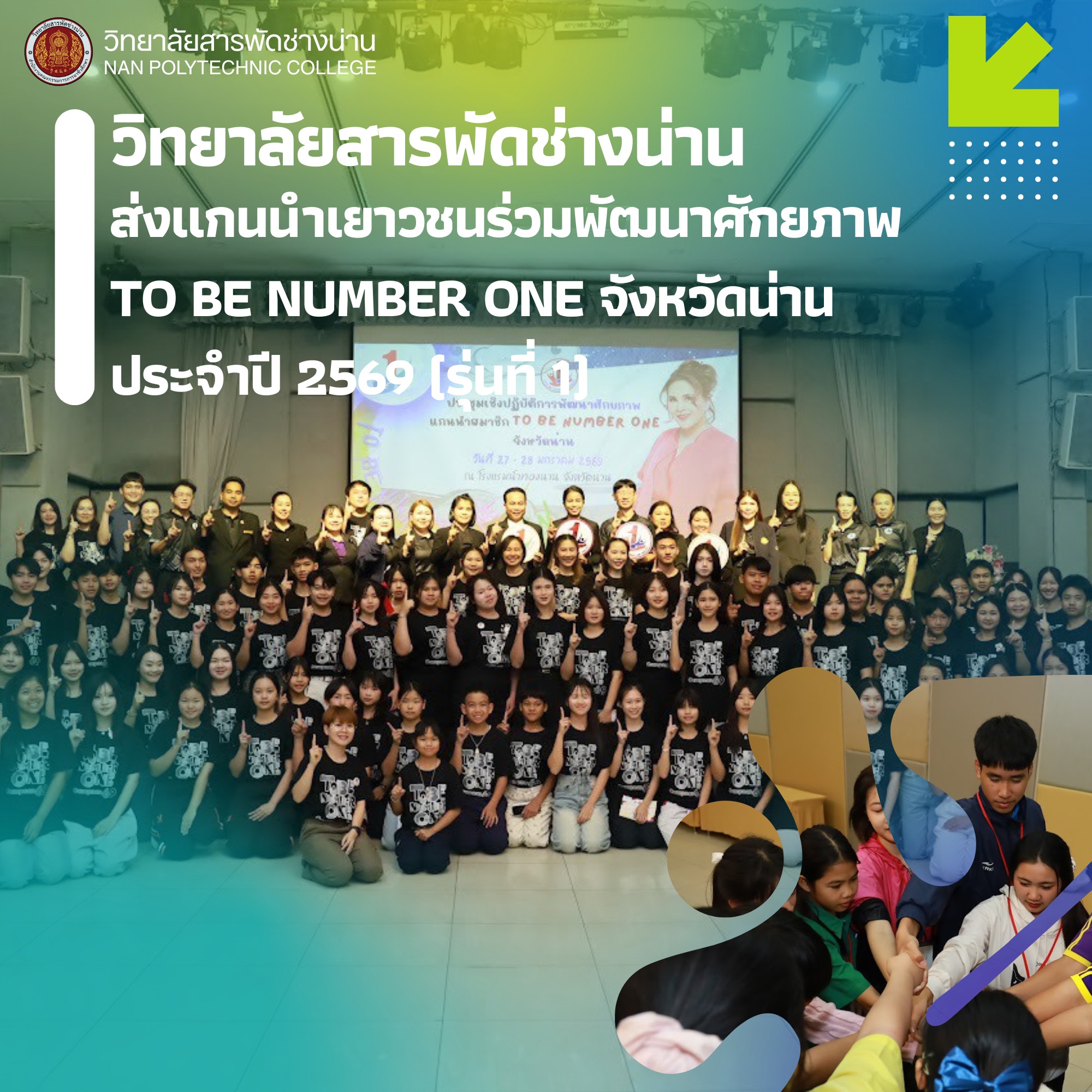 วิทยาลัยสารพัดช่างน่าน ได้ส่งผู้แทนเข้าร่วม การประชุมเชิงปฏิบัติการพัฒนาศักยภาพแกนนำสมาชิก TO BE NUMBER ONE จังหวัดน่าน ประจำปี 2569 (รุ่นที่ 1) ซึ่งมีวัตถุประสงค์เพื่อเสริมสร้างความรู้ ทักษะความเป็นผู้นำ และศักยภาพของแกนนำเยาวชนในการขับเคลื่อนกิจกรรมรณรงค์ป้องกันและแก้ไขปัญหายาเสพติด ภายใต้แนวคิด “TO BE NUMBER ONE เป็นหนึ่งโดยไม่พึ่งยาเสพติด”
