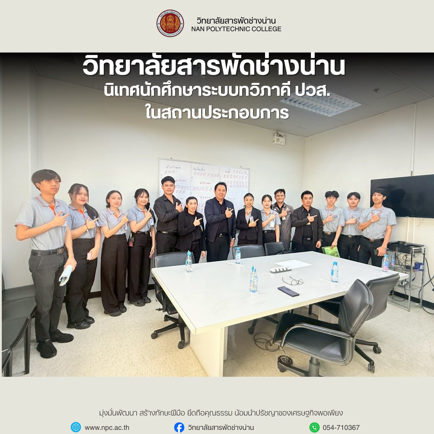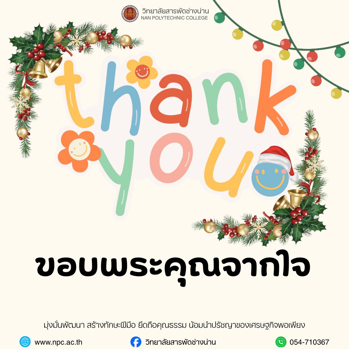 วิทยาลัยสารพัดช่างน่าน ขอขอบพระคุณทุกภาคส่วนที่ให้การสนับสนุนและมีส่วนร่วมในการจัดกิจกรรมของวิทยาลัย ด้วยน้ำใจ ความร่วมมือ และการสนับสนุนอันดียิ่ง ซึ่งเป็นพลังสำคัญในการส่งเสริมการเรียนรู้และพัฒนาศักยภาพของนักเรียน นักศึกษา ![]()